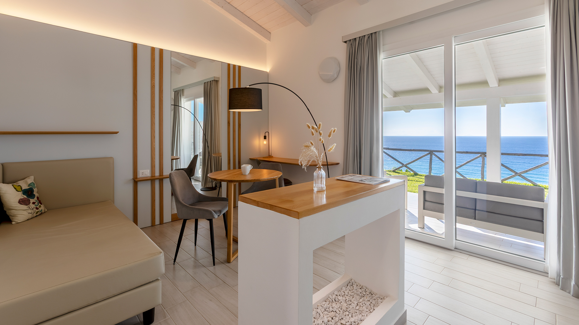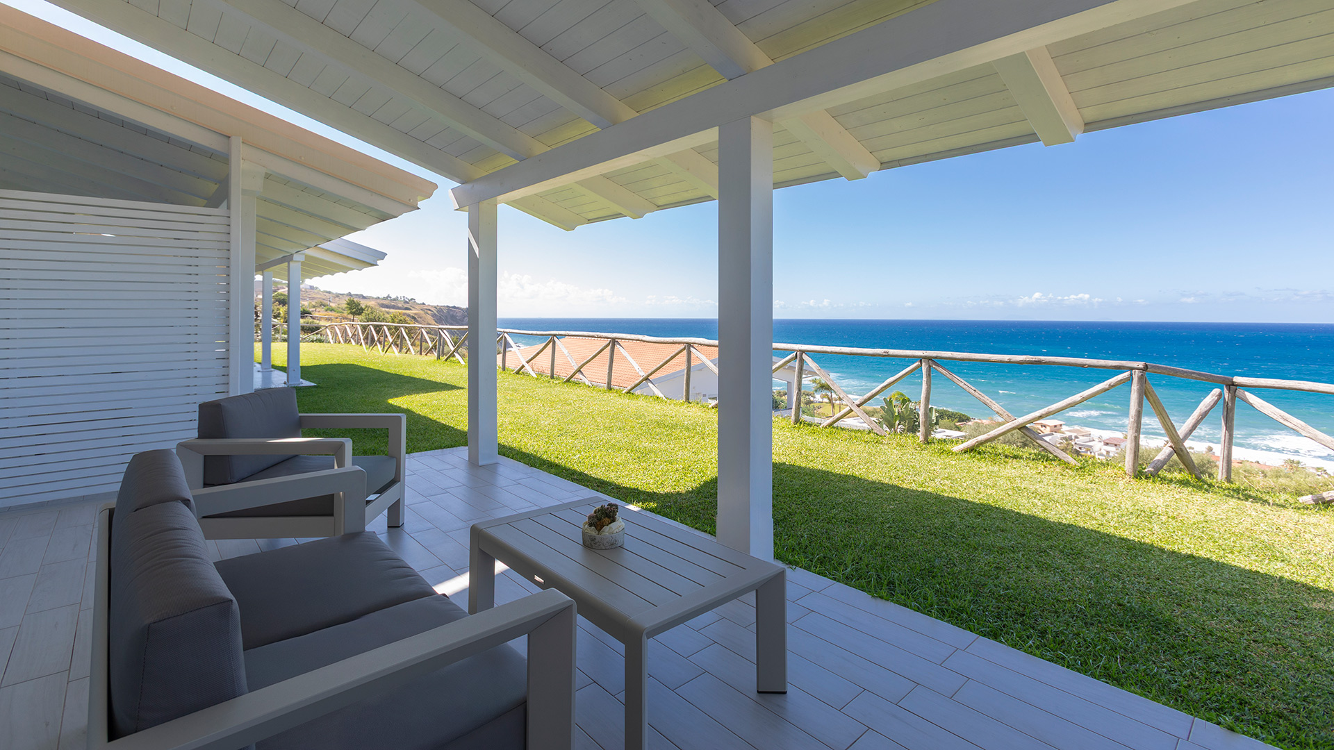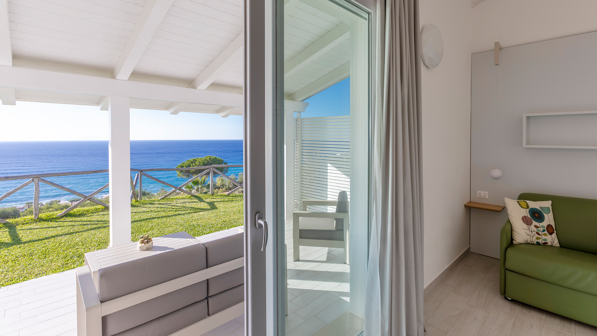 They have a double bed, an armchair bed, a beautiful veranda and a garden overlooking the sea, where you can enjoy a good glass of Calabrian wine, admiring romantic sunsets over the sea.