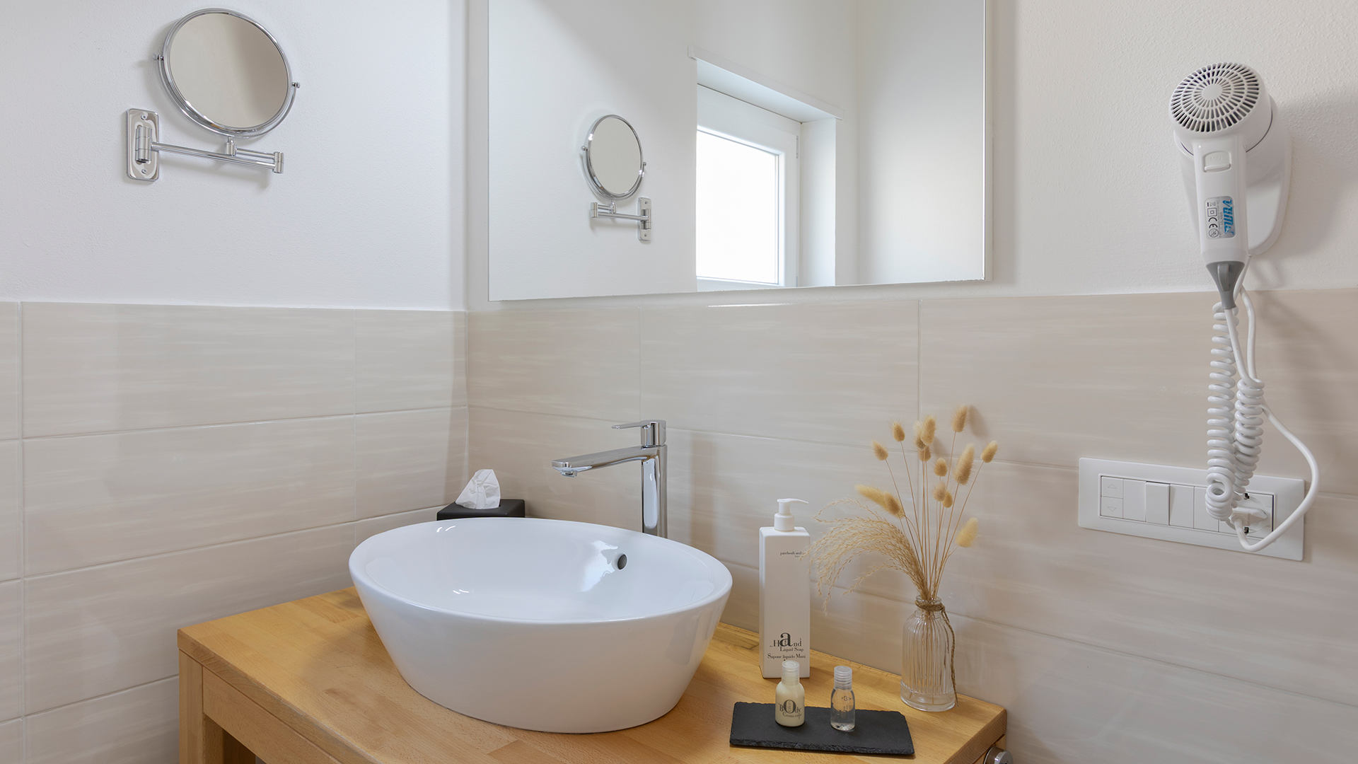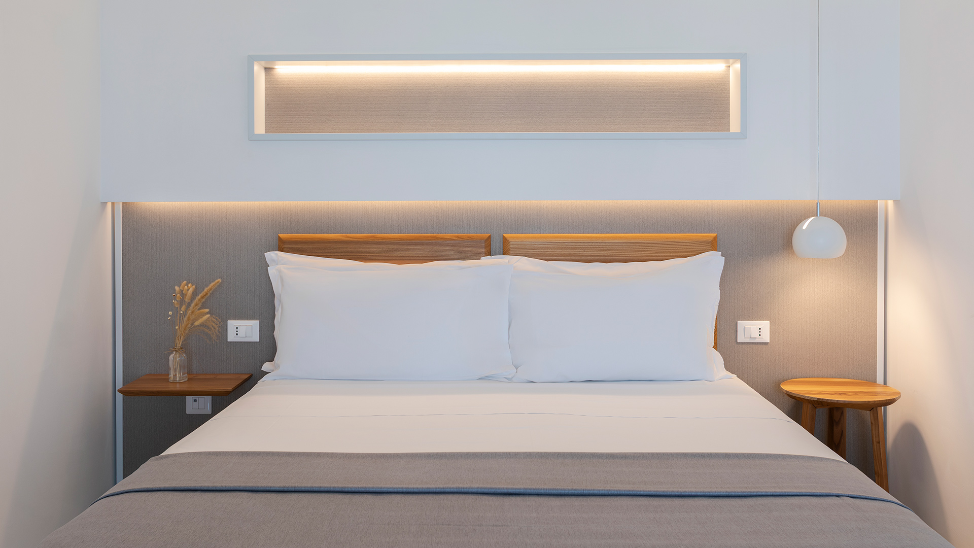 The elegance and simplicity of the lines speak of Italian design and blend with the value of natural materials, such as solid elm and chestnut wood, crafted by local artisans.