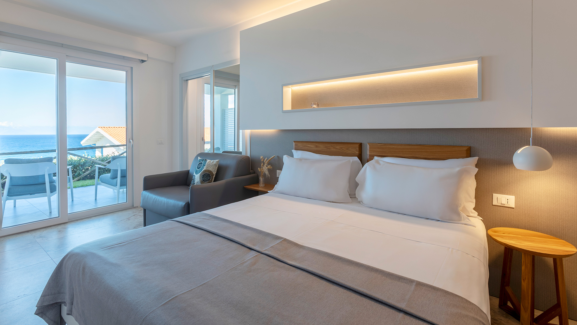 The sea-view rooms and suites offer the privilege of admiring the endless blue sea with intimacy and privacy.