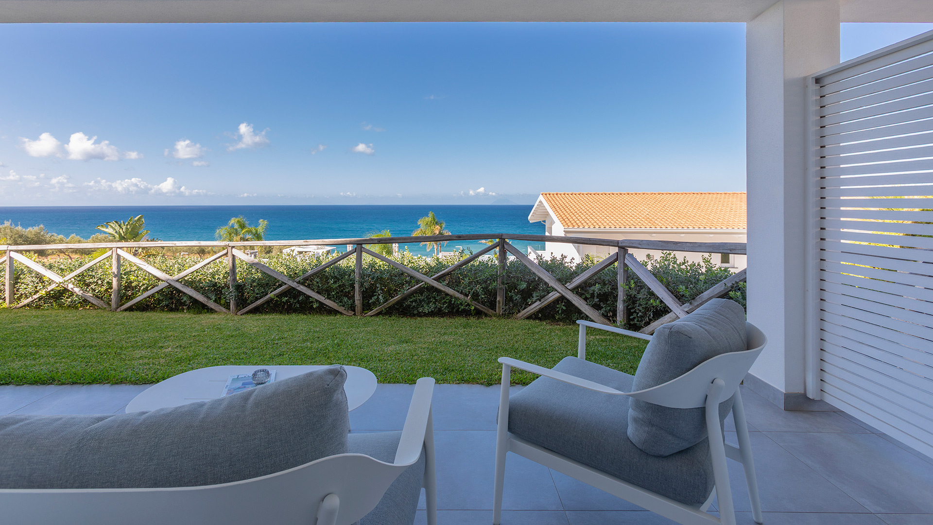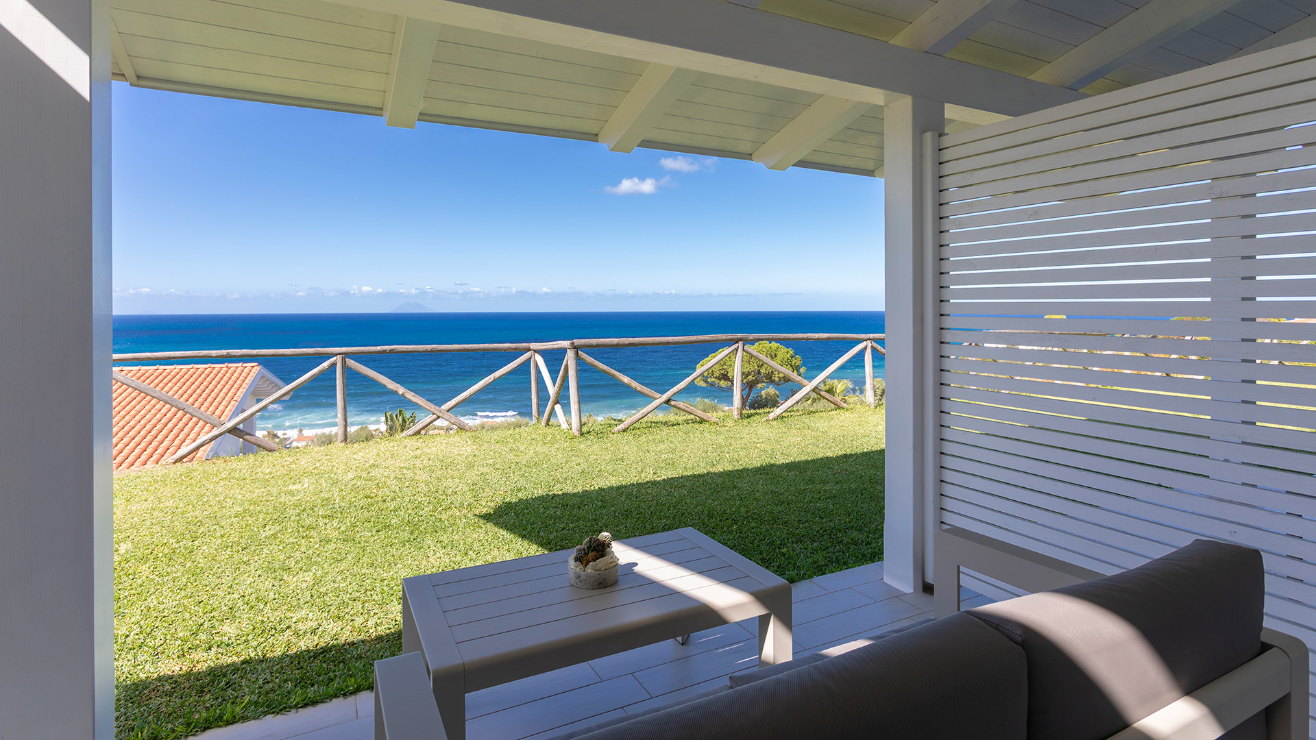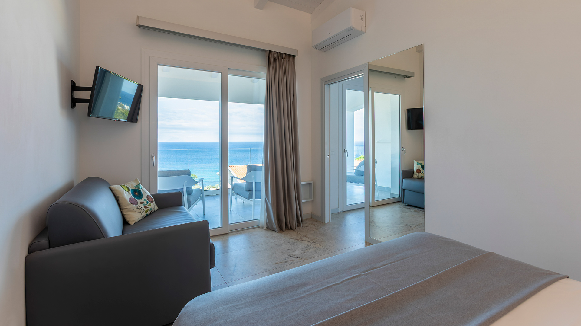 The Comfort sea view room is a cradle of elegance and romance. From your double bed you can admire the changing colors of the sea as the day progresses. Access to the room is independent to ensure maximum privacy and from the large veranda furnished with sofas or armchairs you can enjoy unforgettable sunsets over the sea with Stromboli and the Aeolian Islands on the horizon.