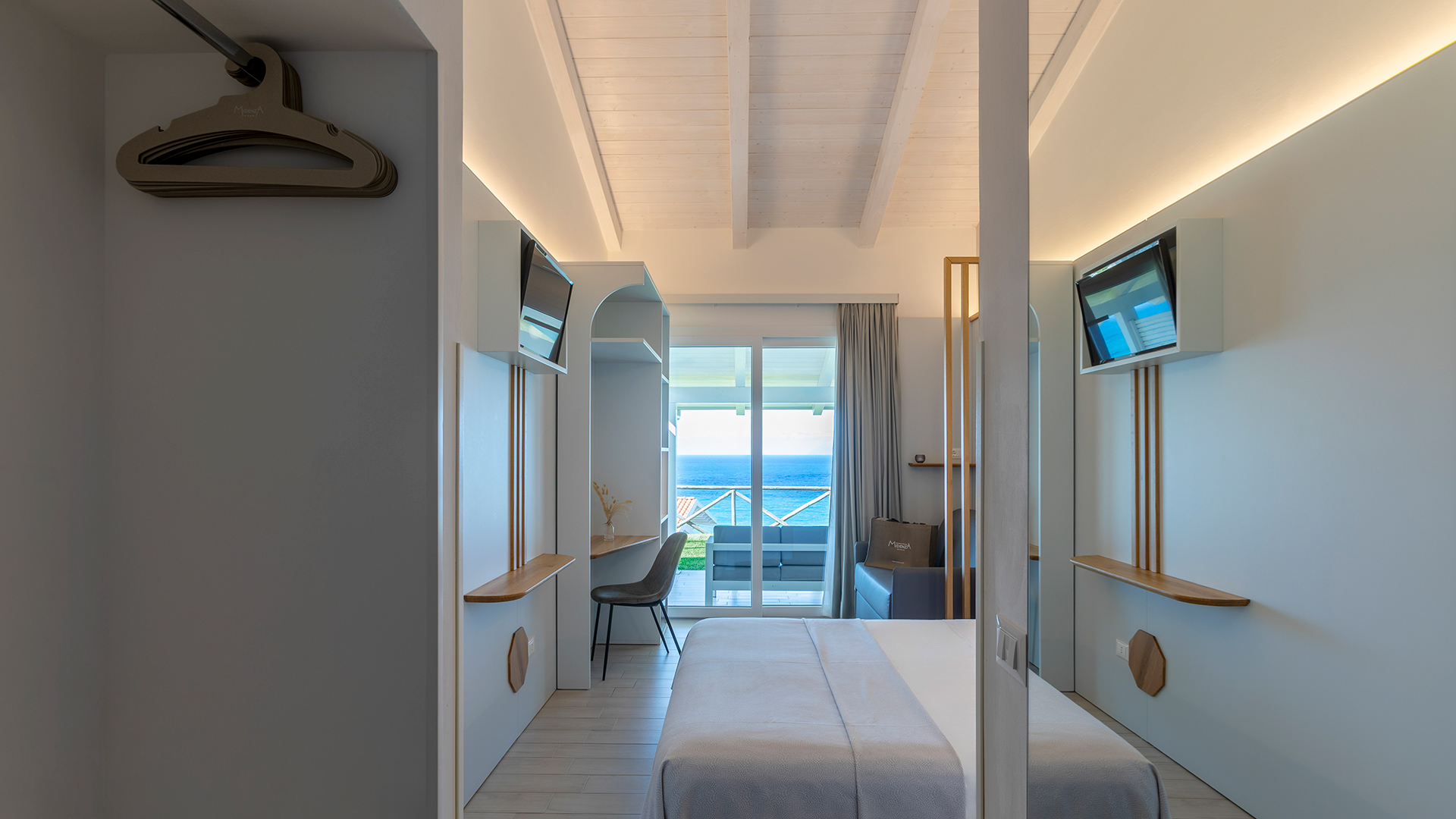 The Accessible Room with sea view is a brand new room with the additional amenities in the bathroom for people with disabilities or reduced mobility. The bathroom is in fact equipped with sanitary fittings with handles and adequate heights, the shower is level with the floor, with direct entrance without doors and without handles.